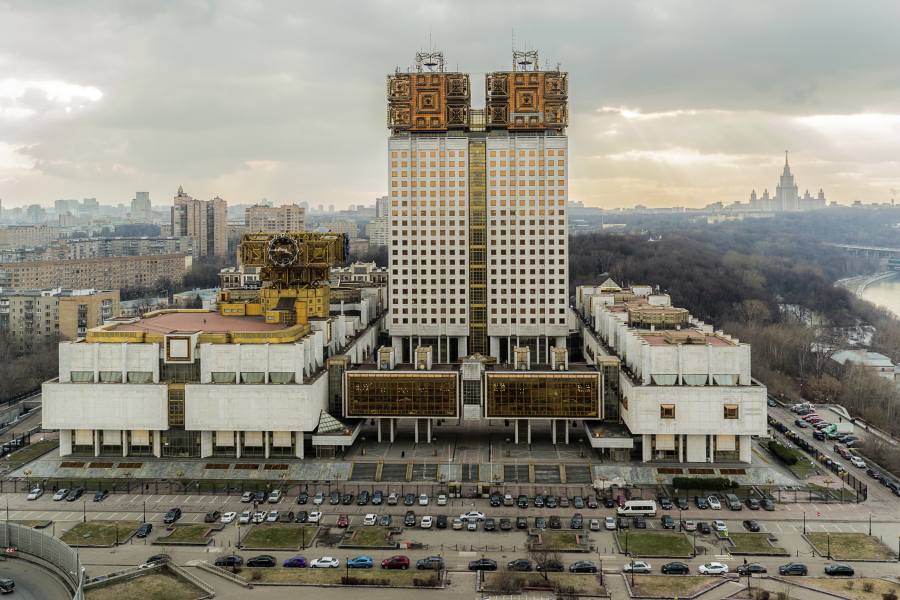 Президиум РАН был одним из главных позднесоветских долгостроев Москвы: его возводили более двух десятилетий и закончили уже после распада СССР. В народе здание получило насмешливое прозвище «Золотые мозги» из-за ажурной конструкции, которая венчает небоскреб. Ее эскиз в виде увеличенной до гигантских размеров атомной кристаллической решетки нарисовал президент Академии наук Мстислав Келдыш, живо интересовавшийся архитектурным проектом. Конструкция скрывает технические системы здания, а золотистый металл выбран ради ассоциации с образом «златоглавой Москвы». Мотив атомных и молекулярных структур еще не раз повторяется в оформлении здания внутри и снаружи: например, в люстрах и многогранных уличных фонарях.