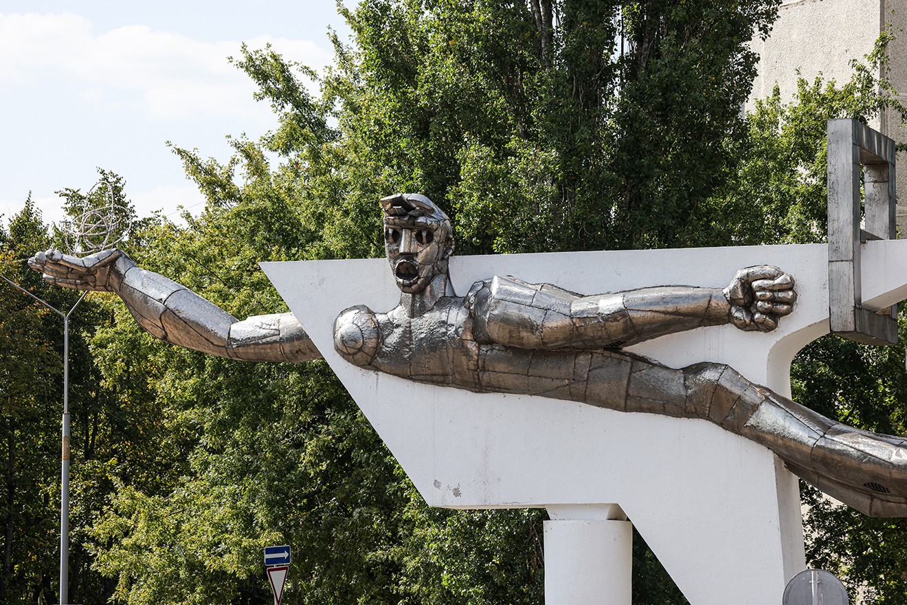 Автор произведения — скульптор Борис Милюков. В том, как Милюков изображает тело в этой и других работах, прослеживается влияние великого монументалиста предыдущего поколения и преподавателя Милюкова в МИПИДИ МИПИДИ — Московский институт прикладного и декоративного искусства. Александра Дейнеки — Милюков считался его лучшим учеником. Тело у Дейнеки, даже статичное, всегда