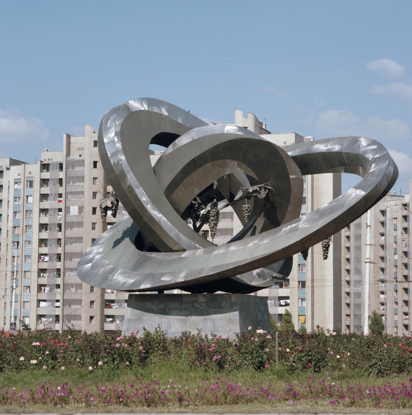 Еще одна работа на тему мирного атома — абстрактная скульптура Юрия Александрова. Этот монумент скорее нетипичен для художника: многие годы его творчество было связано с Владимиром, Вологдой, Суздалем; мотивы и пластику он брал из русского Средневековья.