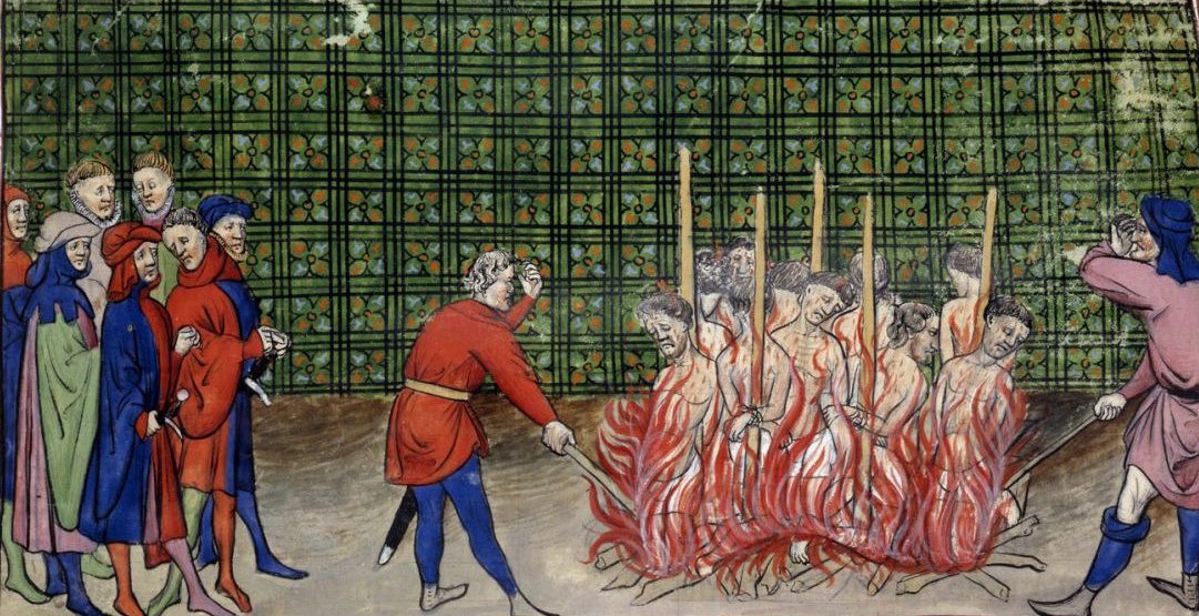 Вернемся в прошлое. Не сильно далекое — позднее Средневековье, эпоху «общества преследования», как назвал ее Роберт И. Мур. В эпоху, где насилие и исключение из социума стали инструментами борьбы с «массовой ересью» R. I. Moore. The Formation of a Persecuting Society. Oxford, 1987.. Для примера посмотрим на то, что происходило в начале XIV века в Аквитании: прокаженных там обвиняли в заговоре с целью захвата власти F. Bèriac. Histoire des lépreux au Moyen Âge. Une société d’exclus. Paris, 1988.. А в Бретани тех же больных изгоняли на окраины поселений через ритуал, имитирующий похороны A. Croix. L’histoire d’un trait de mentalité. Les caquins en Bretagne // Annales de Bretagne et des pays de l’Ouest. Vol. LXXXVI. 1979. . И вот, согласно народным обвинениям, именно эти «не-живые» (статус, схожий с положением упомянутых нами «вампироидов») отравляли колодцы и пищу — якобы с помощью (абсурдная идея!) мусульман. Проще говоря, «других». Та же логика преследования сообщала и о сговоре мусульман с евреями C. Ginzburg. Storia notturna. Una decifrazione del sabba. Torino, 1989.. На последних — с приходом Черной смерти — и вовсе возложили ответственность за эпидемию, оправдывая тем самым чудовищные погромы S. K. Cohn. The Black Death and the Burning of Jews // Past & Present. Vol. CXCVI. 2007.