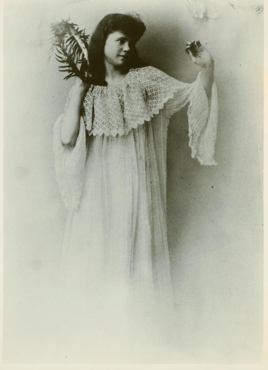 Домашнее образование Дункан было литературно-театральным. Ее мать, Айседора Дункан — старшая, играла детям на фортепиано Бетховена и Шопена, читала вслух Шекспира и Бёрнса. Шестилетняя Айседора выступала на школьных праздниках и даже давала уроки: собрав полдюжины соседских ребят, рассадила их перед собой на полу и принялась учить плавно размахивать руками. На этом фото немного подросшая Айседора, скорее всего, играет ангела или доброго вестника в