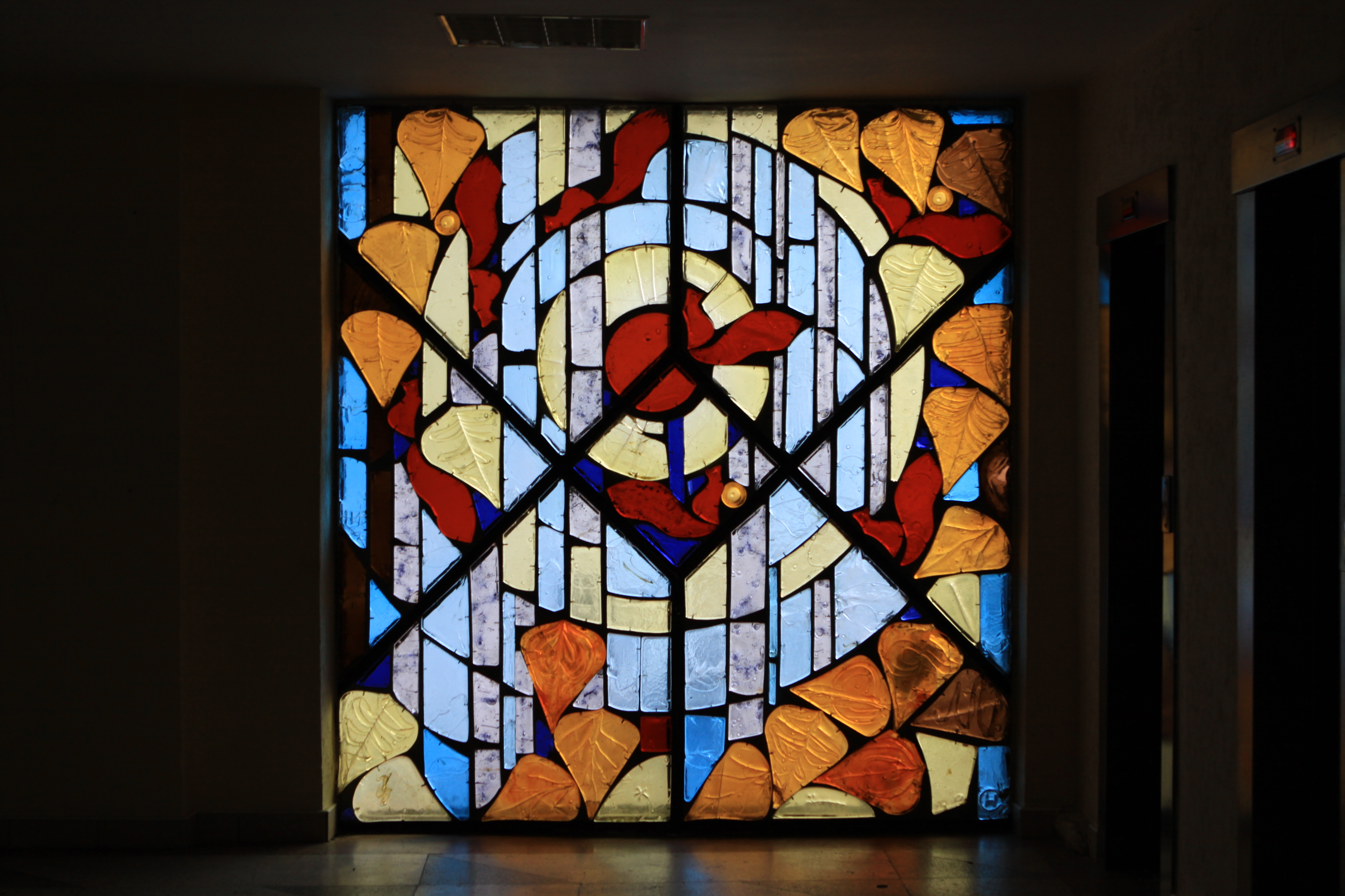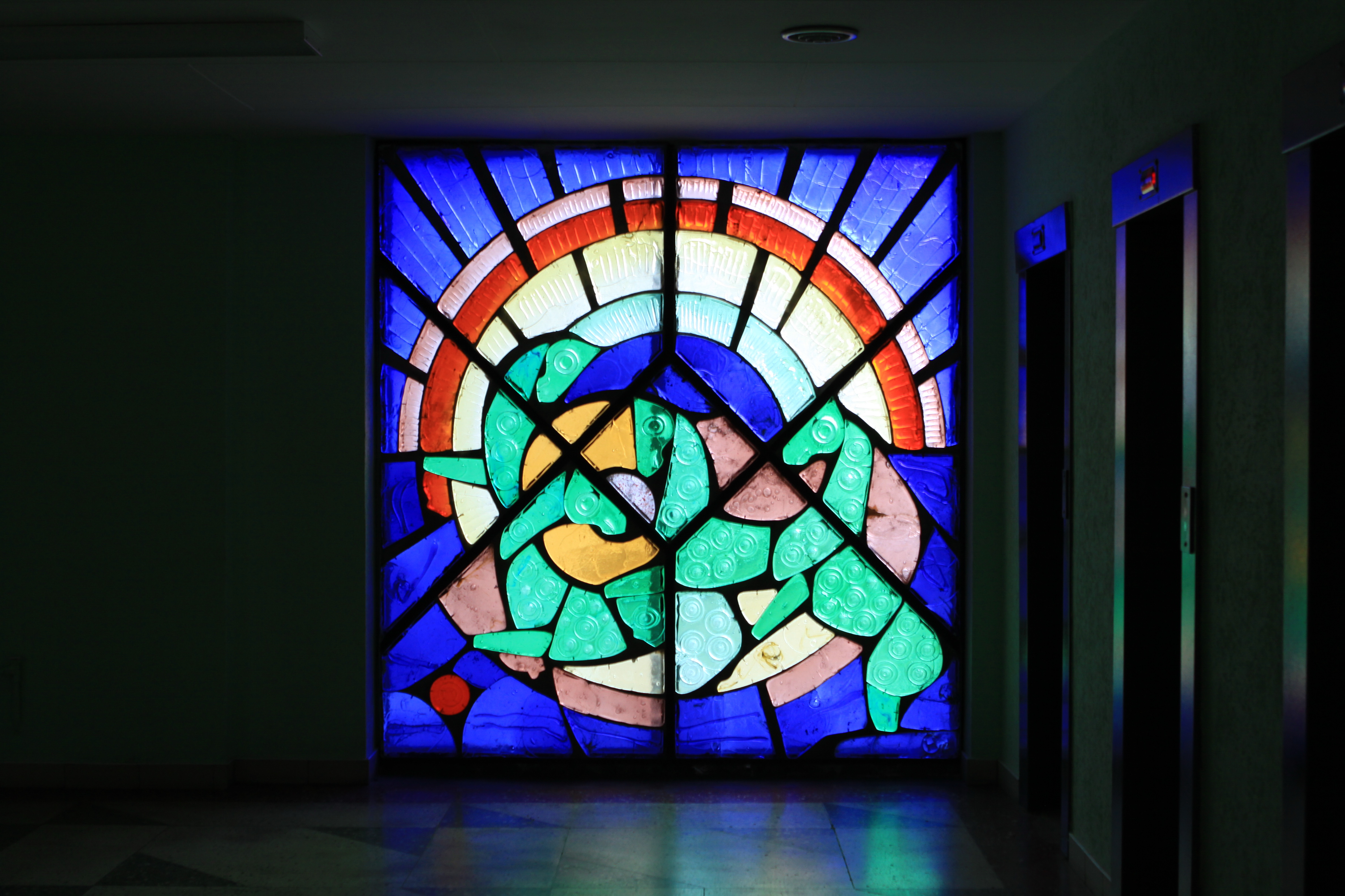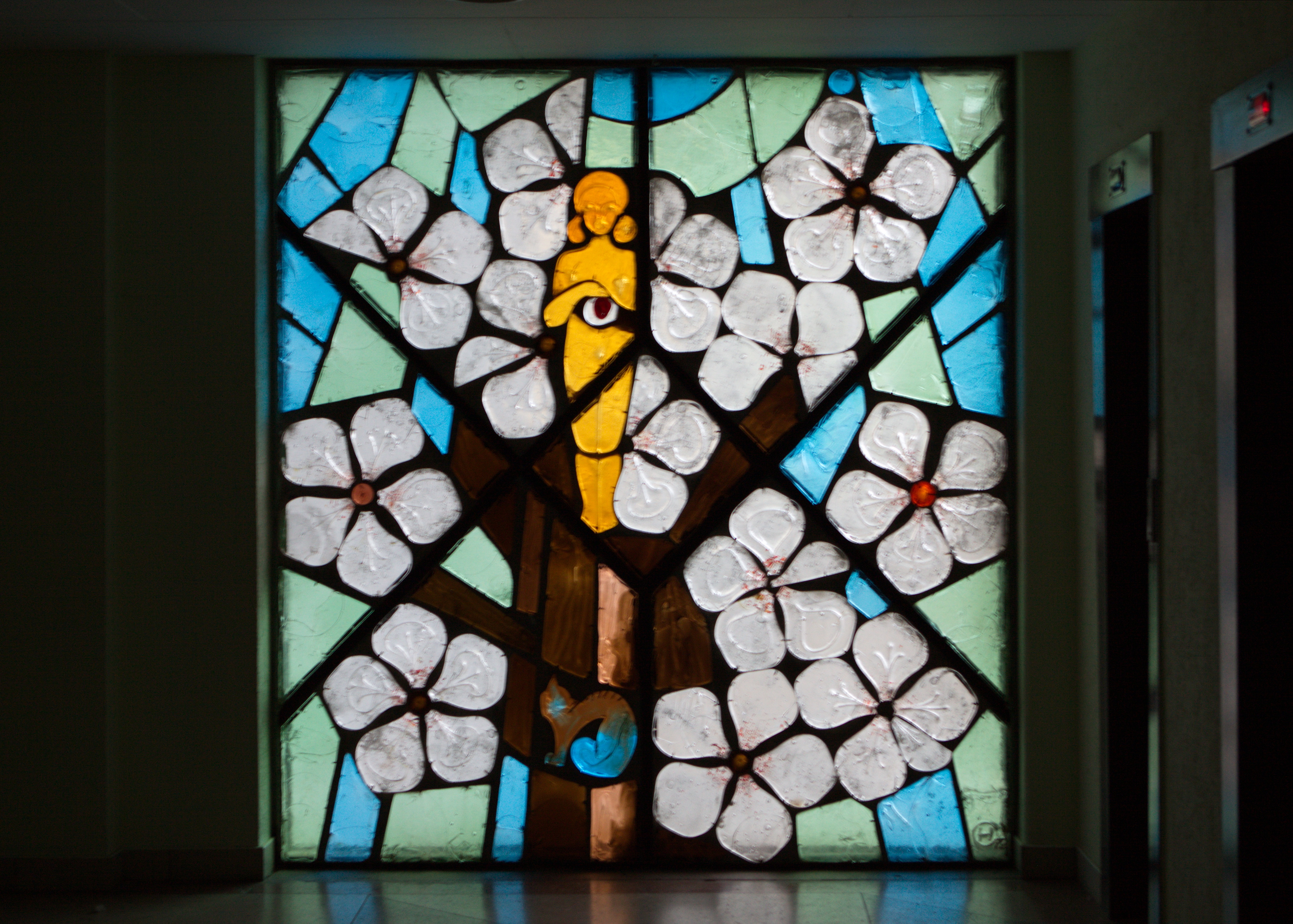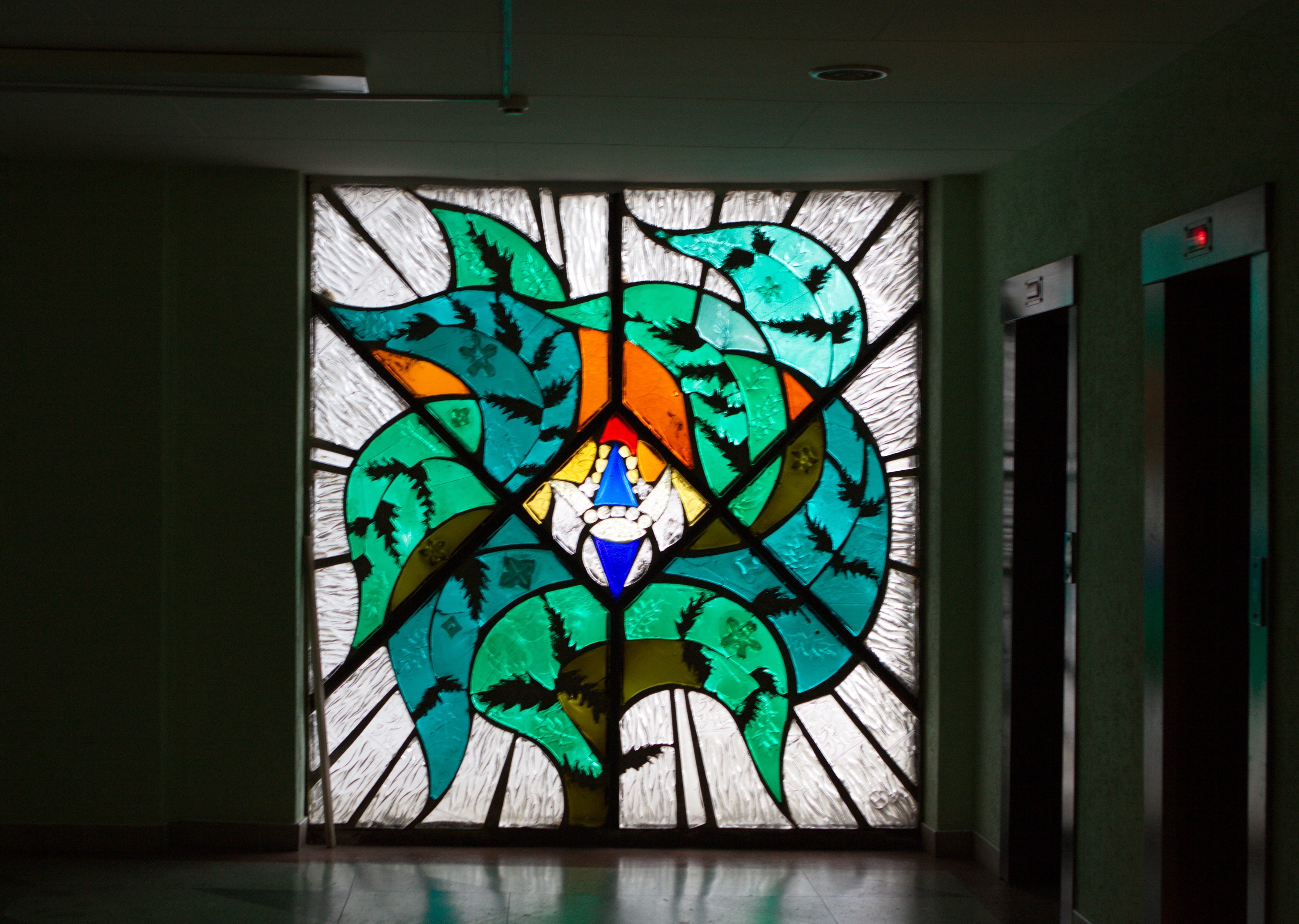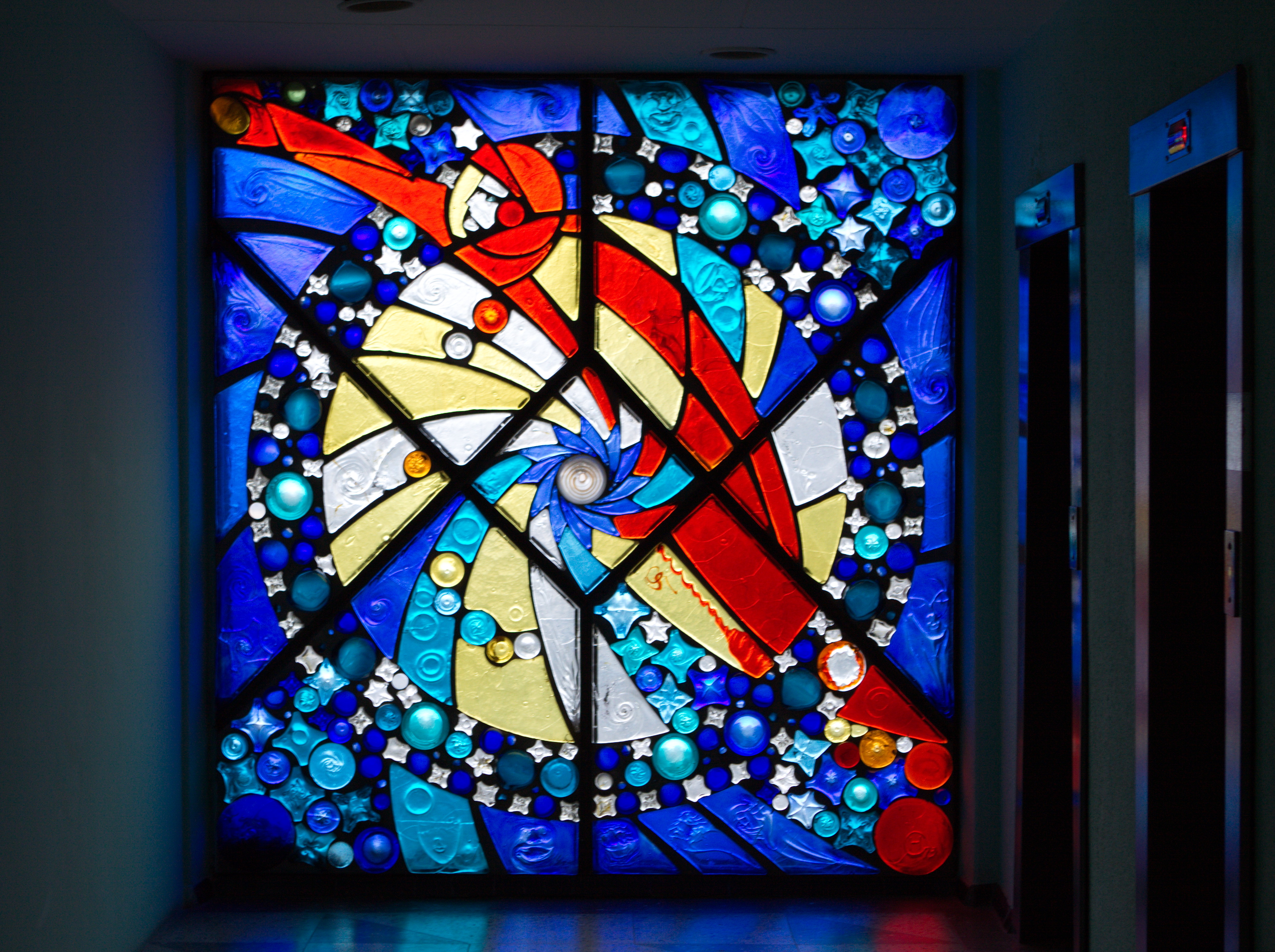Внутри института сохранились литые витражи Нинель Счастной: «Наша Галактика», «Папараць кветка» Название переводится с белорусского как «цветок папоротника»., «Осень», «Зима», «Весна», «Лето». Художница старалась все делать сама, в том числе и отливать стеклянные блоки. Литые витражи, энкаустика и затем керамика — наиболее характерные техники для белорусской монументальной живописи.