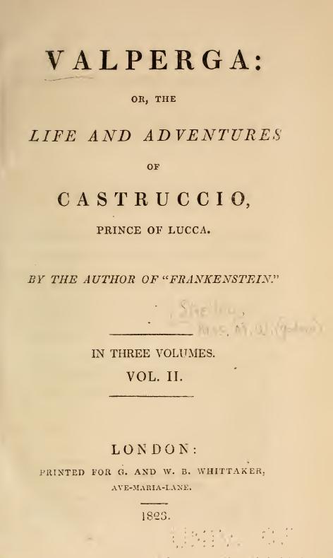 Среди ее книг можно выделить как минимум четыре. Во-первых, написанный еще при жизни Перси Биши Шелли, но изданный позже исторический роман «Вальперга». Мэри Шелли несколько лет прожила в Италии, хорошо говорила