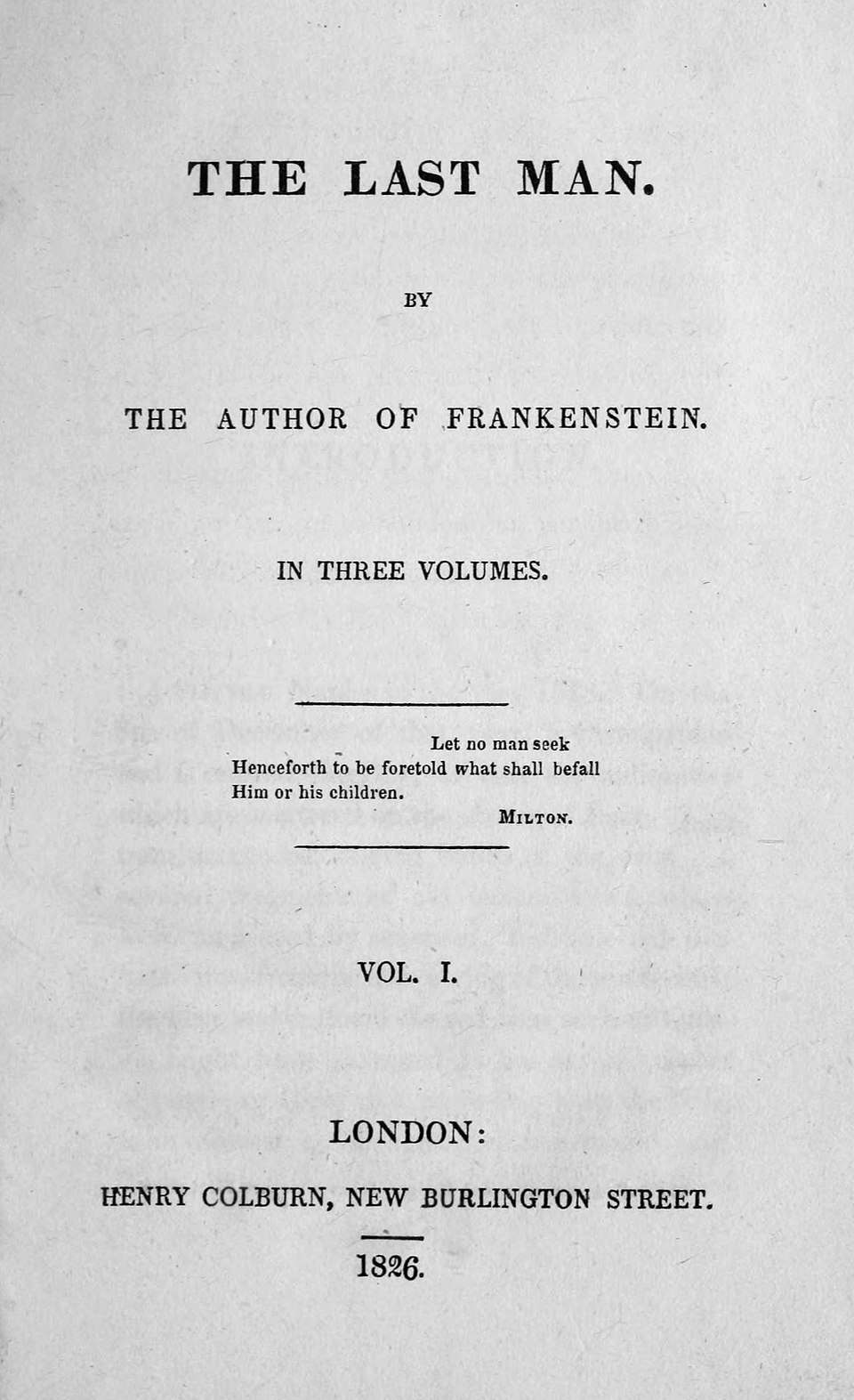 Самым знаменитым текстом Мэри Шелли после «Франкенштейна» стал роман «Последний человек» — одно из первых литературных произведений, посвященных концу света и жизни после него, предтеча жанра постапокалипсис. В нем помимо фантастического сюжета важную роль играют человеческие отношения, столкновение мировоззрений центральных персонажей, в которых современники Мэри Шелли с легкостью обнаруживали саму писательницу, ее покойного мужа и лорда Байрона.