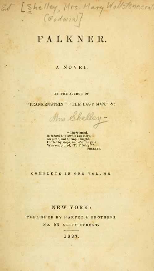 Наконец, последний роман Мэри Шелли, «Фолкнер», был написан в 1837 году. Сегодня его признают как вершину ее творчества, так считала и сама писательница. В этой книге она развивает те идеи и мотивы, к которые обращалась в более ранних произведениях. В первую очередь это отношения отцов и дочерей — тема, отчасти связанная с ее собственной биографией, отчасти — с идеями о женском образовании и социализации, всю жизнь занимавшими Мэри.