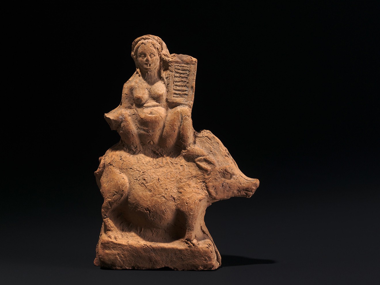 Баубо, которую упоминает уже Эмпедокл, возможно говоря о материнской груди или утробе, остается главной загадкой в целой сети вопросов — хронологических, текстуальных, антропологических, изучавшихся Морисом Олендером См.: M. Olender. Aspects de Baubô // Revue de l’histoire des religions. Vol. 202. № 1. 1985. . В 1898 году среди руин храма Деметры в Приене, вблизи острова Самос, были найдены странные статуэтки, датируемые IV веком до нашей эры. Их идентифицировали как фигурки Баубо. Статуэтки представляют собой головы на ножках, торчащих из-под развязанного платья. Соски соответствуют глазам, лонная щель — ямочке на подбородке, вокруг густых волос — две поднятые руки.