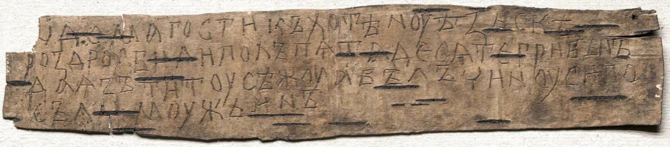 Первая из них (№ 1232) в момент находки выглядела как обрывок, но оказалась полностью сохранившимся документом. Это самая важная из берестяных грамот, найденных в этом году. Разберем сначала первую строку.