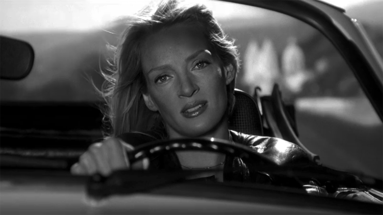 «Убить Билла» Тарантино называет «фильмом во вселенной фильмов» — в том смысле, что герои других его картин (вроде того же «Криминального чтива») в теории могут посмотреть на приключения Беатрикс Киддо в кино. Отсюда и большая степень условности: например, на этом кадре режиссер даже не пытается скрывать, что главная героиня едет на фоне плоского экрана.